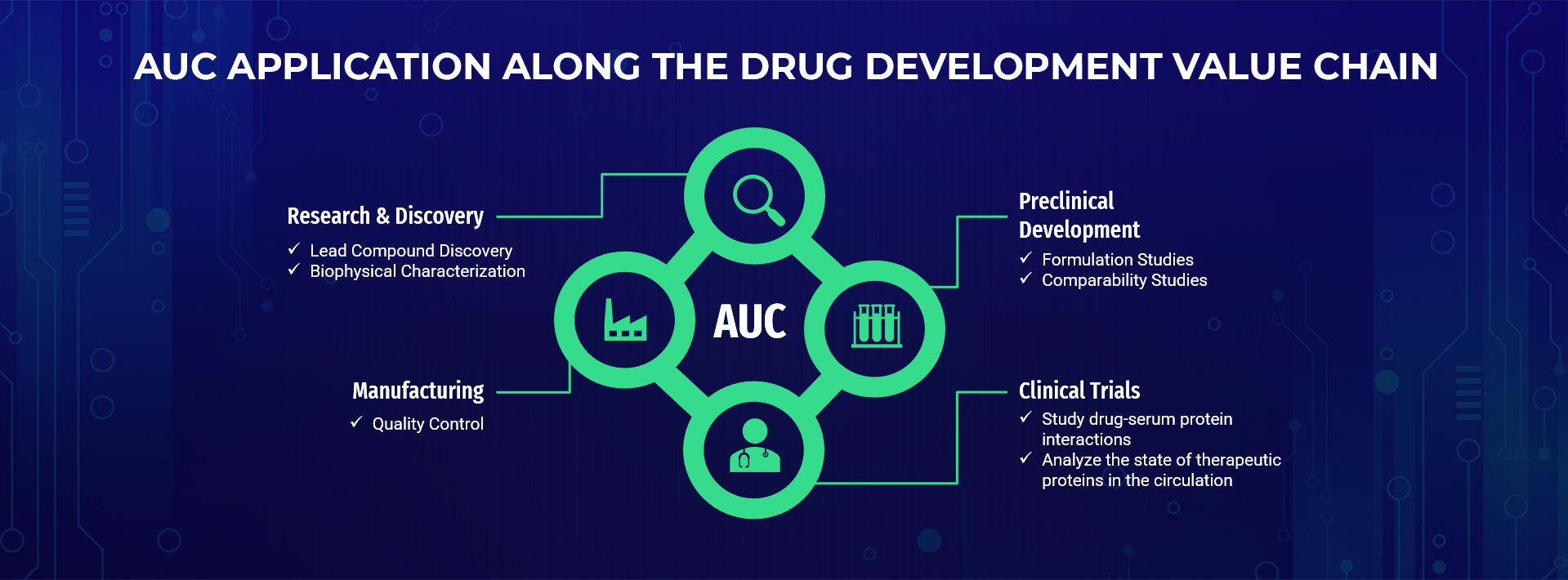 In all these phases, the strength of AUC lies in its ability to provide a detailed molecular profile without requiring any labeling or modification of the molecules being studied. This non-invasive, detailed analysis ensures that drug developers have a clear understanding of their products at every stage, enabling the creation of safer and more effective drugs.